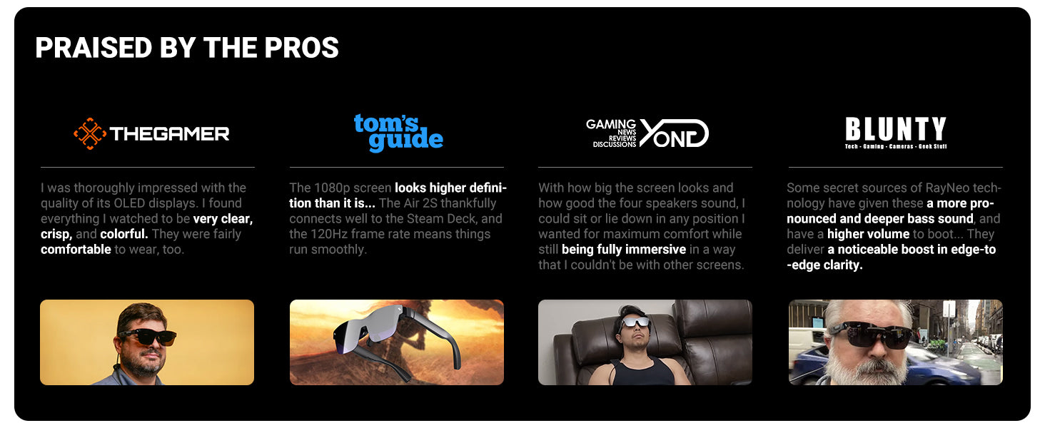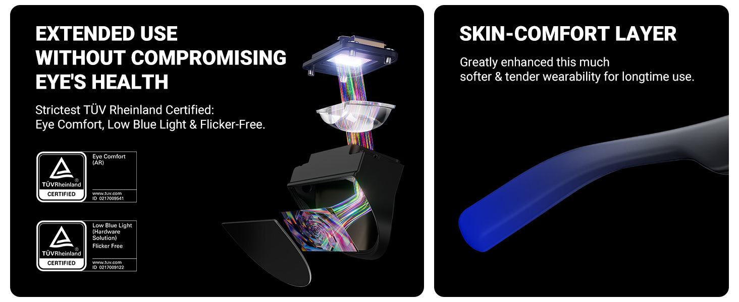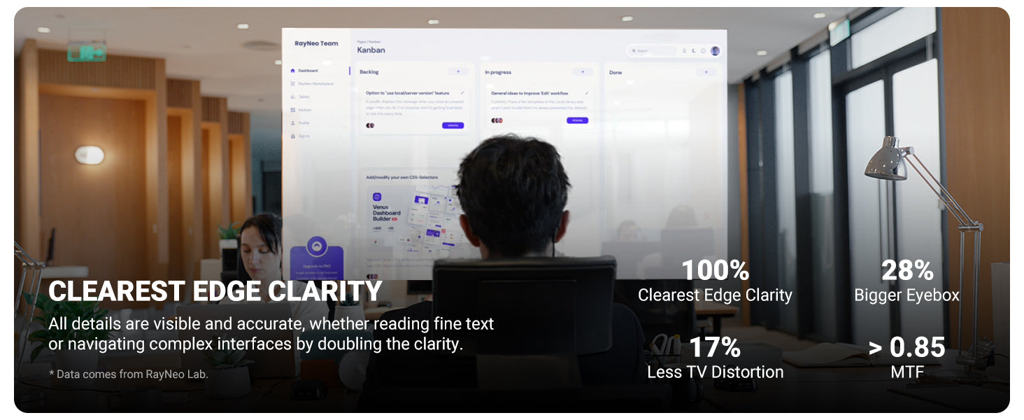 - 201" Micro OLED Plus the 3 Color Modes: The 201" SONY micro OLED screen shows true-to-life colors, plus the 3 color modes meet different visual needs. Brand-new TCL RayNeo Air 2s XR glasses step into the next level by increasing 100% of the edge clarity to eliminate any blurs.