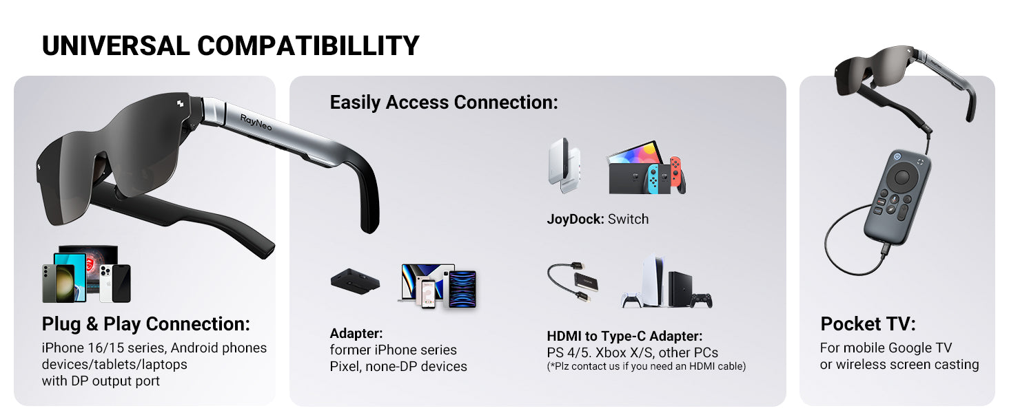Connectivity USB-C, HDMI adapter; compatible with iPhone, Android, PC, Switch, PS5
